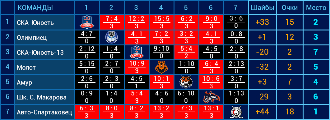 7 - Амур - Сапунков Артемий - 98 - Нападающий - Шайбы: 3